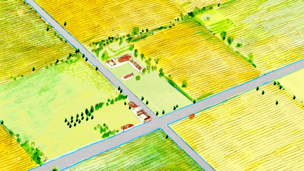 Le strade che formano la centuriazione sono dritte e si incrociano ad angolo retto.
